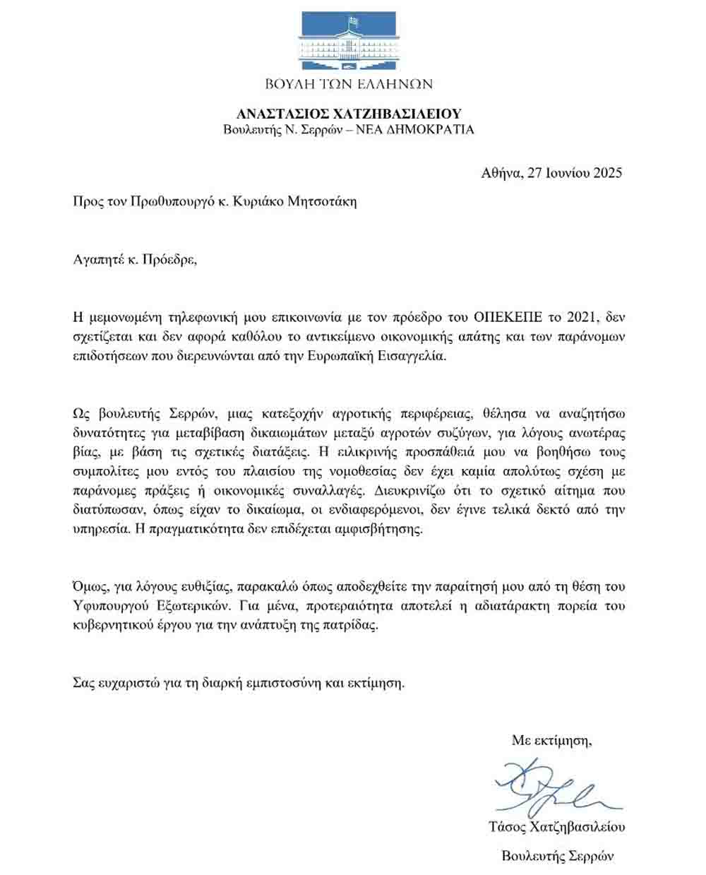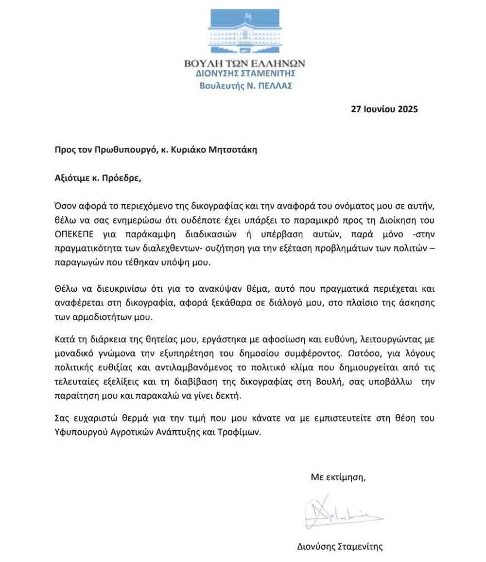 Τέλος, την παραίτησή του υπέβαλε και ο Γενικός Γραμματέας Αγροτικής Ανάπτυξης και Τροφίμων Γιώργος Στρατάκος.