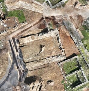 «Ένα ακόμα ενδιαφέρον κτίριο, που βρέθηκε κατά τις εργασίες του δικτύου πυρασφάλειας», επισημαίνει η κ. Δαδάκη, «βρίσκεται νοτιοδυτικά της παλαίστρας που θεωρούμε πως ήταν θέρμες (δημόσια λουτρά). Αποκαλύφθηκε τμήμα μιας αίθουσας με ημικυκλική διαμόρφωση και δάπεδα από ορθομαρμάρωση. Το ενδιαφέρον είναι ότι έχει και μια παλαιοχριστιανική φάση, καταπατώντας έναν ρωμαϊκό δρόμο και μας δίνει στοιχεία για τη ρυμοτομία της πόλης κατά τον 6ο αι. μ.Χ».