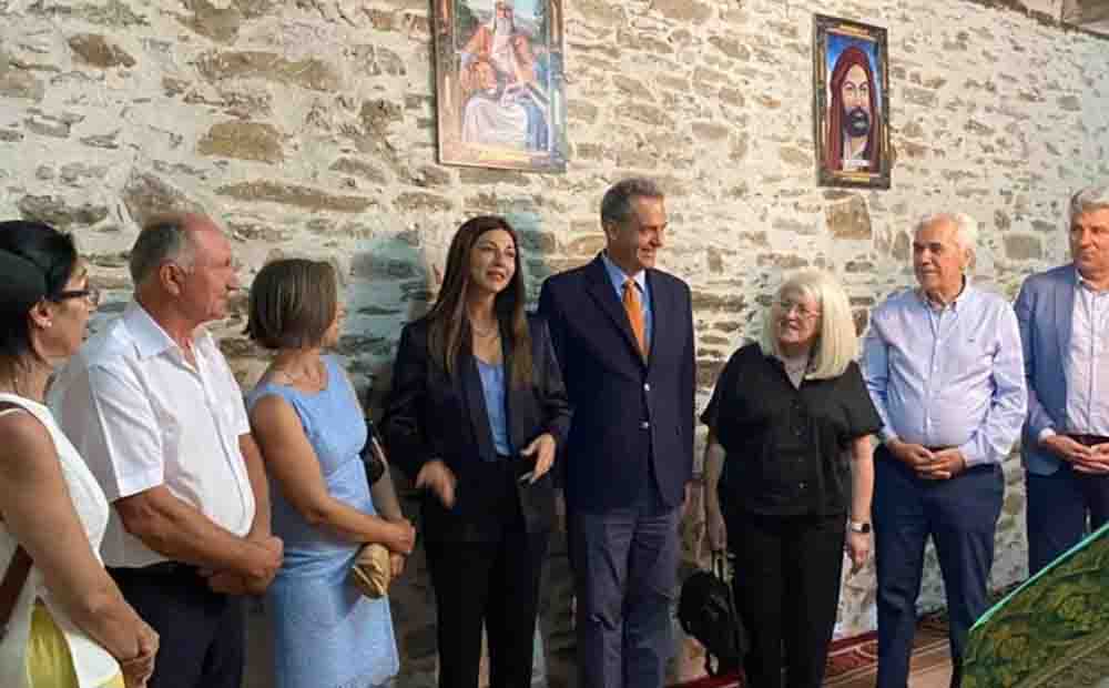 Εκπρόσωποι των κατοίκων της περιοχής πρόσφεραν αναμνηστικά δώρα στη Σοφία Ζαχαράκη και τον Αγγελο Συρίγο.