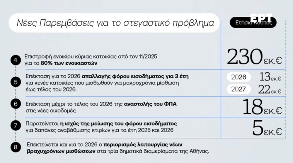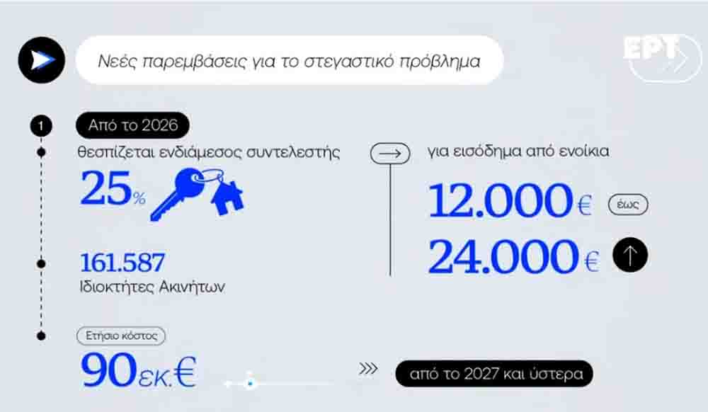 Σύμφωνα με τις κυβερνητικές ανακοινώσεις, για την ενίσχυση της οικιστικής και επιχειρηματικής δραστηριότητας στα ακριτικά νησιά του Αιγαίου που έχουν μικρό σχετικά αριθμό κατοίκων, επεκτείνεται το μέτρο στα νησιά της περιφέρειας Βόρειου Αιγαίου, του νομού Έβρου (Σαμοθράκη) και του νομού Δωδεκανήσων με πληθυσμό σύμφωνα με την απογραφή του 2021 έως 20.000 κατοίκους. Το ετήσιο κόστος του μέτρου εκτιμάται σε 25 εκατ. ευρώ.